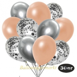 30er Luftballon-Set, 10 Silber-Konfetti, 10 Metallic-Lachs und 10 Chrome-Silber Luftballons