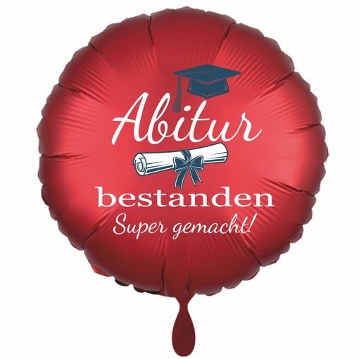 Abitur bestanden - Super gemacht! Roter Rund-Luftballon, Satin de Luxe, 45cm, mit Helium-Ballongas