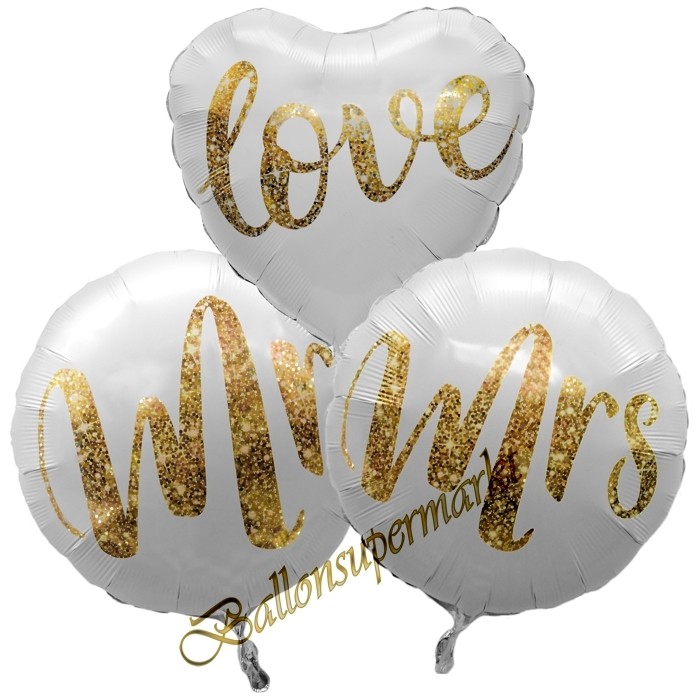 3 Folienballons (1x Mr, 1x Mrs, 1x Love), je 45 cm