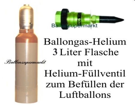 Die Bedienung der Helium- Ballongasflasche und des Ballongasventils ist recht einfach: Flasche aufstellen und gegen Umfallen absichern, Füllventil aufschrauben, Flaschenventil öffnen. Den Hals des Ballons (Öffnung) über den Füllstutzen des Helium-Füllventils schieben, den Ballonhals abdichten und fest halten, Ventil durch Biegen öffnen, Ballon befüllen bis zum angegebenen Durchmesser (Maßband oder Zollstock ist hier von Vorteil), Ballon mit Knoten oder Fixverschluss verschließen. Siehe auch: Video, Luftballons mit Helium füllen.