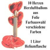 Mini-Set 4, 10 Folienballons, Herzballons, Rundballons, Sternballons, 1 Liter Helium