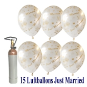 Mini Ballons Helium Set, 10 Herzballons aus Folie, Alles Gute zur Hochzeit, 1 Liter Helium
