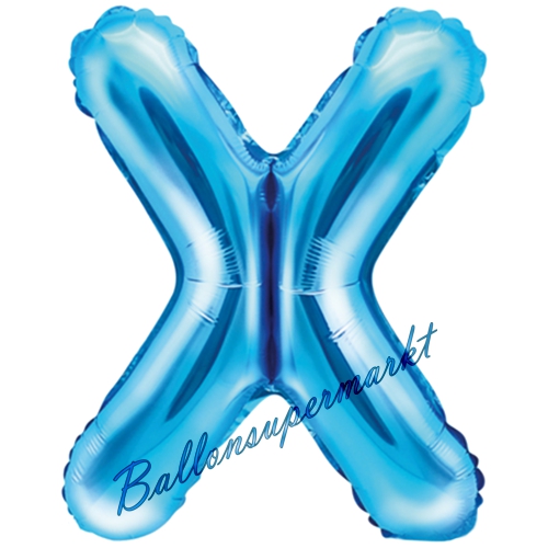 Luftballon Buchstabe X, Buchstabedekoration mit blauen Luftballons aus Folie