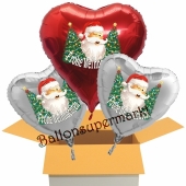 3 Luftballons zu Weihnachten mit Helium und Grußkarte, Weihnachtsmänner, Frohe Weihnachten