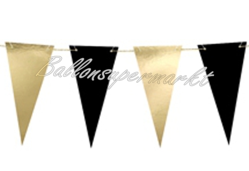 Edle Wimpelkette in Schwarz und Gold metallic. Stilvolle Dekoration zu Goldhochzeit, Hochzeit, Silvester und vielen weiteren Anlässen.