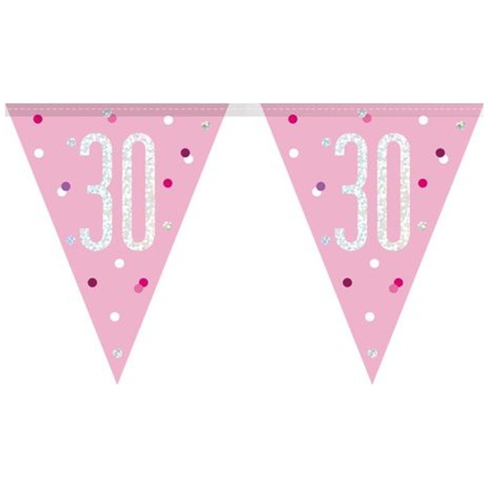 Edle Wimpeldekoration in zartem Rosa und Silber mit holografischem Glitzereffekt zum 30. Gebutstag.