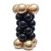 Anleitung: Zuerst blasen Sie alle Ballons auf. Dann fügen Sie nacheinander die goldenen und die schwarzen Luftballons in die Ballonringe ein. So haben Sie jetzt 6 Balloncluster, die übereinander gelegt werden. Knoten Sie 2 Modellierballons zusammen und knoten Sie den oberen Modellierballon am oberen Ring der Säule an, ziehen Sie die Modellierballons durch die 6 Deko-Ringe und verknoten Sie diese am unteren Ende des unteren Ballonrings. Achten Sie darauf, dass die Modellierballons so stramm wie möglich gespannt werden sollen. Jetzt richten Sie alle Ballons noch in die richtigen Positionen. Den 3. Modellierballon verknoten Sie mit dem Ventil eines Folienballons, den Sie vorher mit Luft befüllt haben, sowie stramm am oberen Ring der Luftballonsäule. Ungefüllte Folienballons findenSie auch hier im Shop.