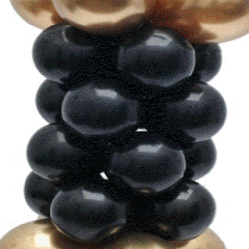 Anleitung: Zuerst blasen Sie alle Ballons auf. Dann fügen Sie nacheinander die goldenen und die schwarzen Luftballons in die Ballonringe ein. So haben Sie jetzt 6 Balloncluster, die übereinander gelegt werden. Knoten Sie 2 Modellierballons zusammen und knoten Sie den oberen Modellierballon am oberen Ring der Säule an, ziehen Sie die Modellierballons durch die 6 Deko-Ringe und verknoten Sie diese am unteren Ende des unteren Ballonrings. Achten Sie darauf, dass die Modellierballons so stramm wie möglich gespannt werden sollen. Jetzt richten Sie alle Ballons noch in die richtigen Positionen. Den 3. Modellierballon verknoten Sie mit dem Ventil eines Folienballons, den Sie vorher mit Luft befüllt haben, sowie stramm am oberen Ring der Luftballonsäule. Ungefüllte Folienballons findenSie auch hier im Shop.