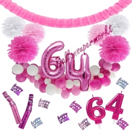 Happy Birthday Deko-Set zum 64. Geburtstag in Rosa, Weiß und Pink zur Befüllung mit Luft
