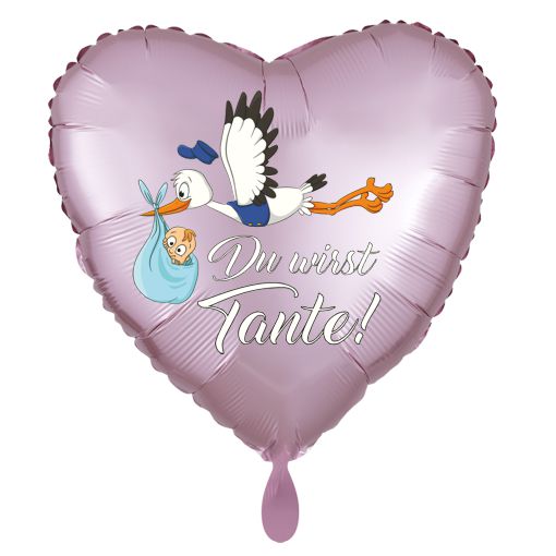 Du wirst Tante, Klapperstorch. Herzluftballon inklusive Helium, Satin de Luxe, rosa, 43 cm