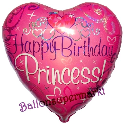 Herzluftballon aus Folie mit Helium: Happy Birthday Princess!