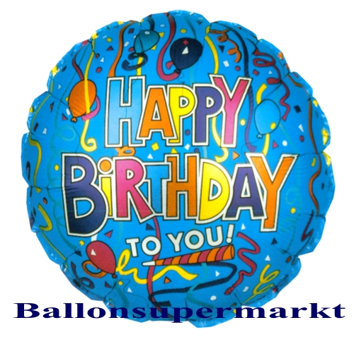 Happy Birthday To You, großer Folienballon, blau, Rundballon, mit Helium zum Geburtstag