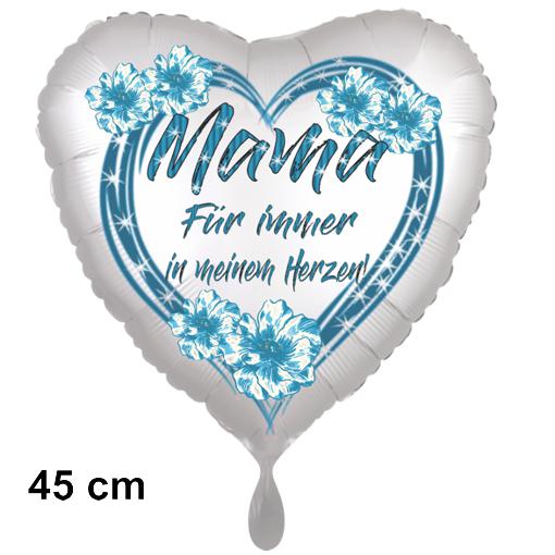 - Mama - Für immer in meinem Herzen! Herzluftballon, 45 cm, in Satinweiß aus Folie mit Ballongas-Helium