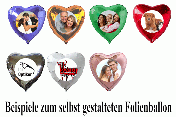 Gestalten Sie sich Ihren eigenen Fotoballon oder Werbeballon. Sie können Texte in Rundform eingeben, persönliche Glückwünsche eintragen, zum Geburtstag das Geburtstagsalter oder zur Hochzeit den Hochzeitstag. Alle erdenklichen Wünsche und Grüße lassen sich so wunderbar übermitteln. Zur Gestaltung von Werbeballons finden Sie ebenfalls viele verschiedene Möglichkeiten. Sollten Sie an einer höheren Auflage interessiert sein, sind wir gern mit weiteren Auskünften behilflich.