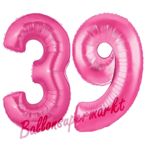 Deko-Zahlen-Luftballons Neununddreißig in Pink zum 39. Geburtstag
