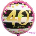 Runder Luftballon aus Folie zum 40. Geburtstag, bunt bedruckt mit Punkten und der Aufschrift: 40 Happy Birthday.