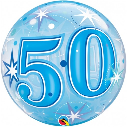 - 50. Geburtstag, Bubble Luftballon, blau (mit Helium)