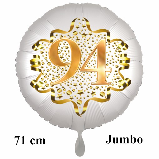 Jumbo Luftballon aus Folie zum 94. Geburtstag, Satin Weiß, 71 cm, rund, inklusive Helium