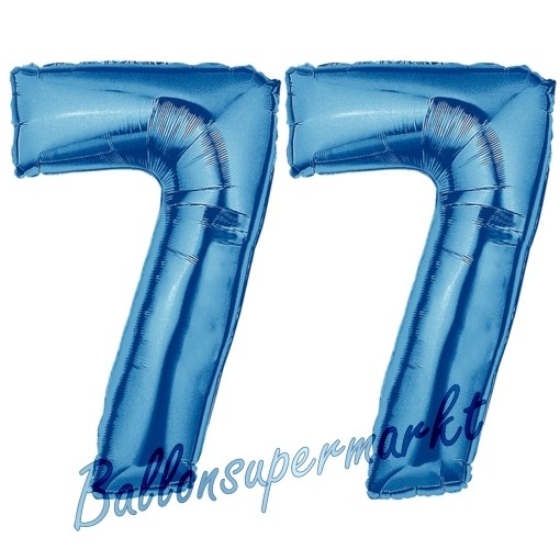 Deko-Zahlen-Luftballons Siebenundsiebzig in Blau zum 77. Geburtstag