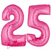 Luftballons aus Folie Zahl 25, Pink, 100 cm mit Helium zum 25. Geburtstag