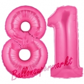 Luftballons aus Folie Zahl 81, Pink, 100 cm mit Helium zum 81. Geburtstag