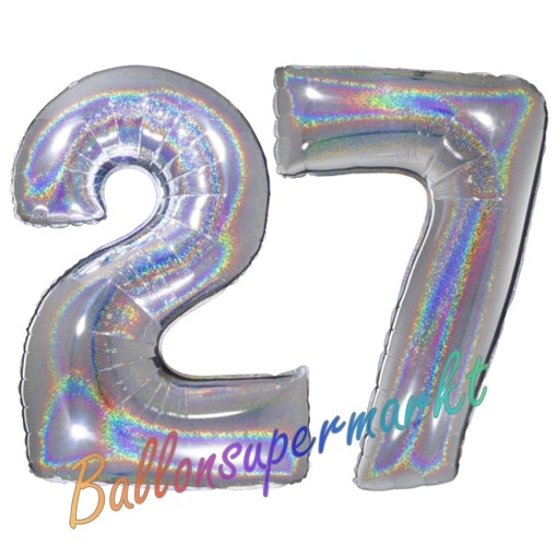 Folienballons-Zahlen-27-holografisch-Silber-Luftballons-Geschenk-27.-Geburtstag-Jubilaeum-Firmenveranstaltung