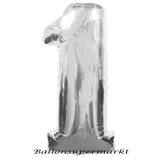 Zahlen-Luftballon aus Folie, 1, Silber, 100 cm groß