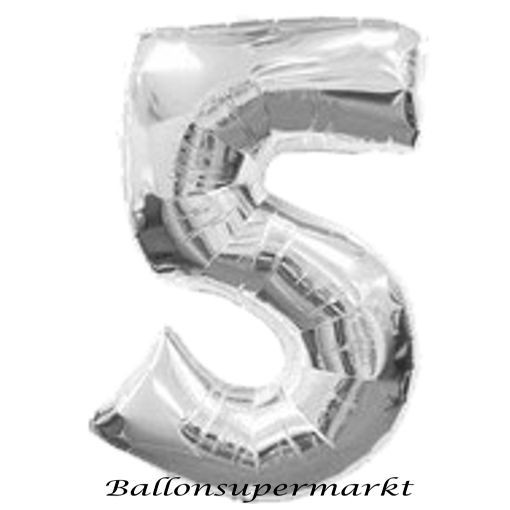 Luftballon aus Folie Zahl 5, Silber, 100 cm, inklusive Helium/Ballongas