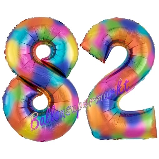 Bunte Deko-Zahlen-Luftballons Zweiundachtzig in Regenbogenfarben zum 82. Geburtstag