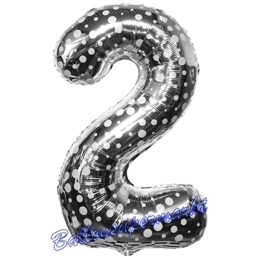 Zahl 2 Luftballon in Silber mit weißen Punkten