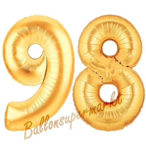 Deko-Zahlen-Luftballons Achtundneunzig in Gold zum 98. Geburtstag