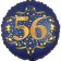 Runder Luftballon aus Folie in Marineblau mit edler Satin-Optik, bedruckt mit Luftschlangen, Sternen, Konfetti und der Zahl 56 in Gold.