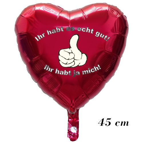 Ihr habt es echt gut! Ihr habt ja mich! Herzluftballon aus Folie, Burgund, 45 cm, ohne Helium-Ballongas