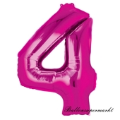 Zahlen-Luftballon aus Folie, 4, Vier, Pink, 100 cm groß