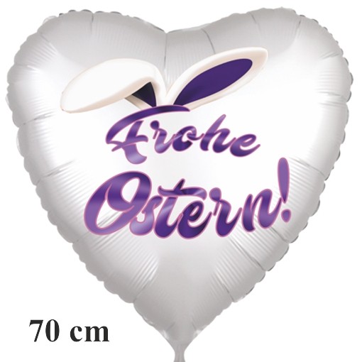 - Frohe Ostern, Herzluftballon mit Hasenohren, 70 cm, satinweiß, inklusive Helium