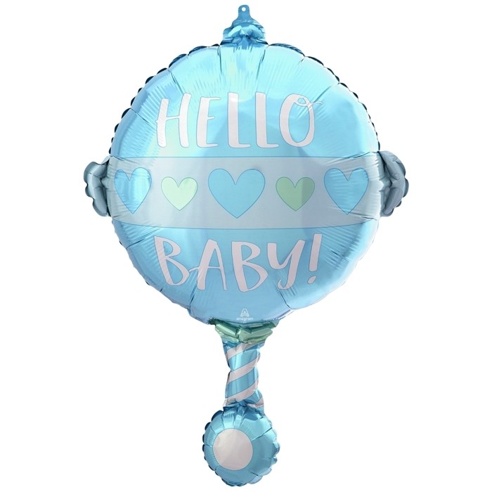 Folienballon-Babyrassel-Blau-Hello-Baby-Shape-Luftballon-Dekoration-zur-Geburt-Taufe-Babyparty-Junge