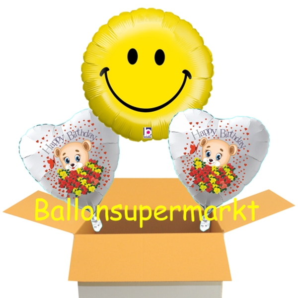 5 Smiley Luftballons aus Folie mit Helium-Ballongas