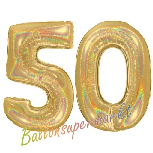 Luftballons aus Folie Zahl 50, Gold, holografisch, 100 cm mit Helium zum 50. Geburtstag