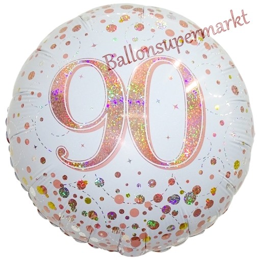 Holografischer Luftballon aus Folie, Sparkling Fizz Rosegold 90, zum 90. Geburtstag, Jubiläum, mit Helium