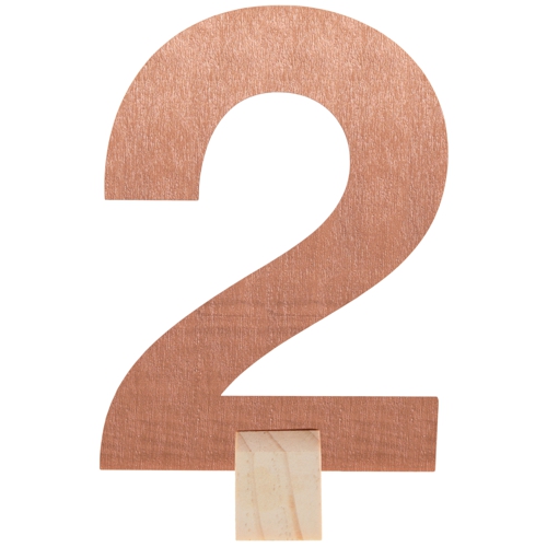 1 Stück Tischaufsteller Zahl 2 in Roségold aus lackiertem Holz, 15 cm x 10 cm