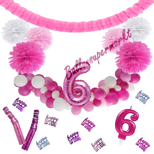 Happy Birthday Deko-Set zum 6. Geburtstag in Rosa, Weiß und Pink zur Befüllung mit Luft