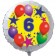 Luftballon zum 6. Geburtstag, Sterne und Luftballons, Rundballon in Weiß mit Ballongas Helium