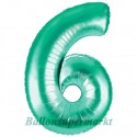 Luftballon aus Folie Zahl 6, Aquamarin, 100 cm, inklusive Helium/Ballongas