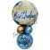 1 Spitze bestehend aus: 1 holografischer Folienballon Happy Birthday Marble Mate Blue, 45 cm Ø, 1 Aquaballon mit Konfetti in Blau und Gold, 4 Latexballons, 12 cm in Gold und Blau Chrome, alles luftgefüllt