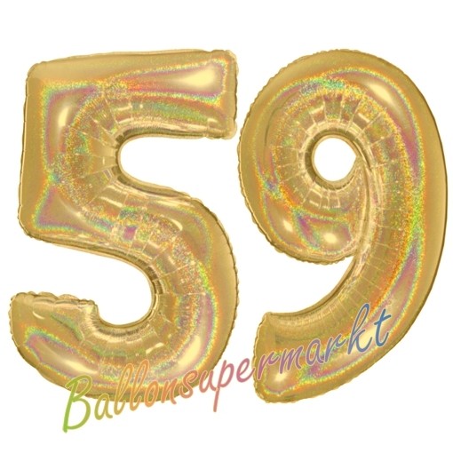 Luftballons aus Folie Zahl 59, Gold, holografisch, 100 cm mit Helium zum 59. Geburtstag