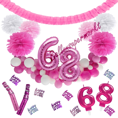 Dekorations-Set-zum-68.-Geburtstag-Wilde-Girlande-Pink-Rosa-Weiß
