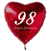 98. Geburtstag, roter Herzluftballon aus Folie, 61 cm groß, mit Helium