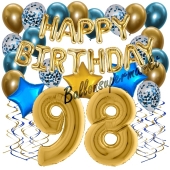 Happy Birthday Chrome Blue & Gold, Geburtstagsdeko-Set mit Luftballons zum 98. Geburtstag,43-teilig