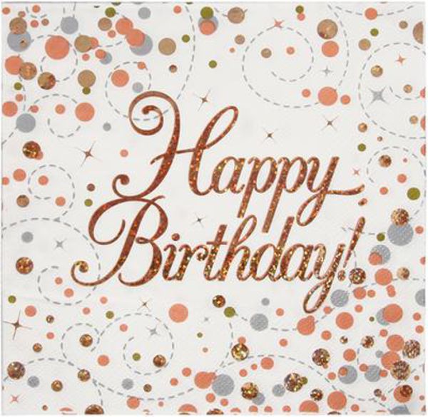 Geburtstag Dekoration - Servietten Happy Birthday Rosegold Holografisch