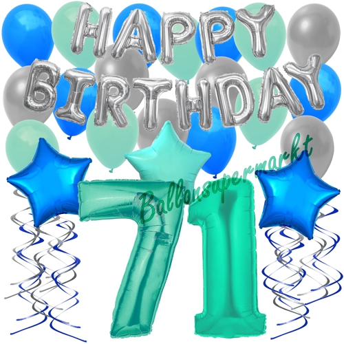 Ballons-und-Dekorations-Set-zum-71.-Geburtstag-Happy-Birthday-Aquamarin